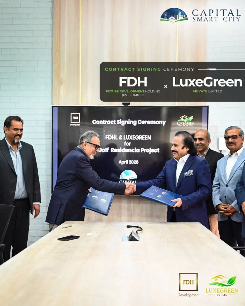 Capital Smart City Islamabad has once again captured investor attention with a premium new development announcement. A formal contract signing ceremony was held at the Sales Gallery of Capital Smart City, marking a strategic joint venture with Luxe Green for the development of exclusive 2 Kanal and 4 Kanal villas at Golf Residencia.